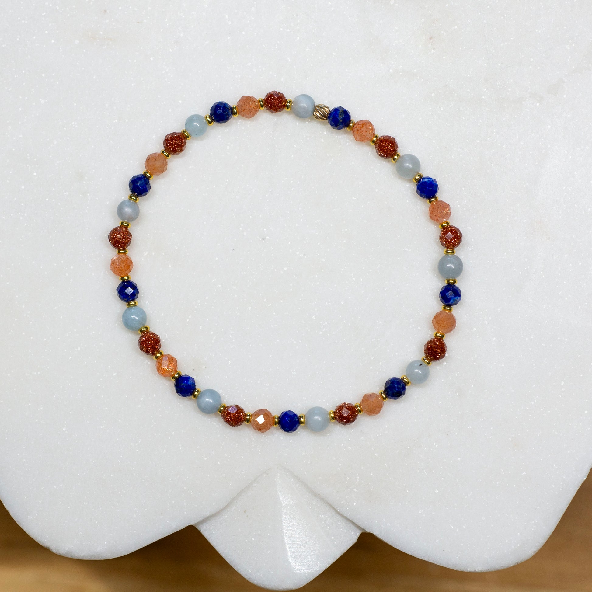 Sparkling Aquamarine, Goldstone, Sunstone and Lapis Lazuli Stretch Bracelet