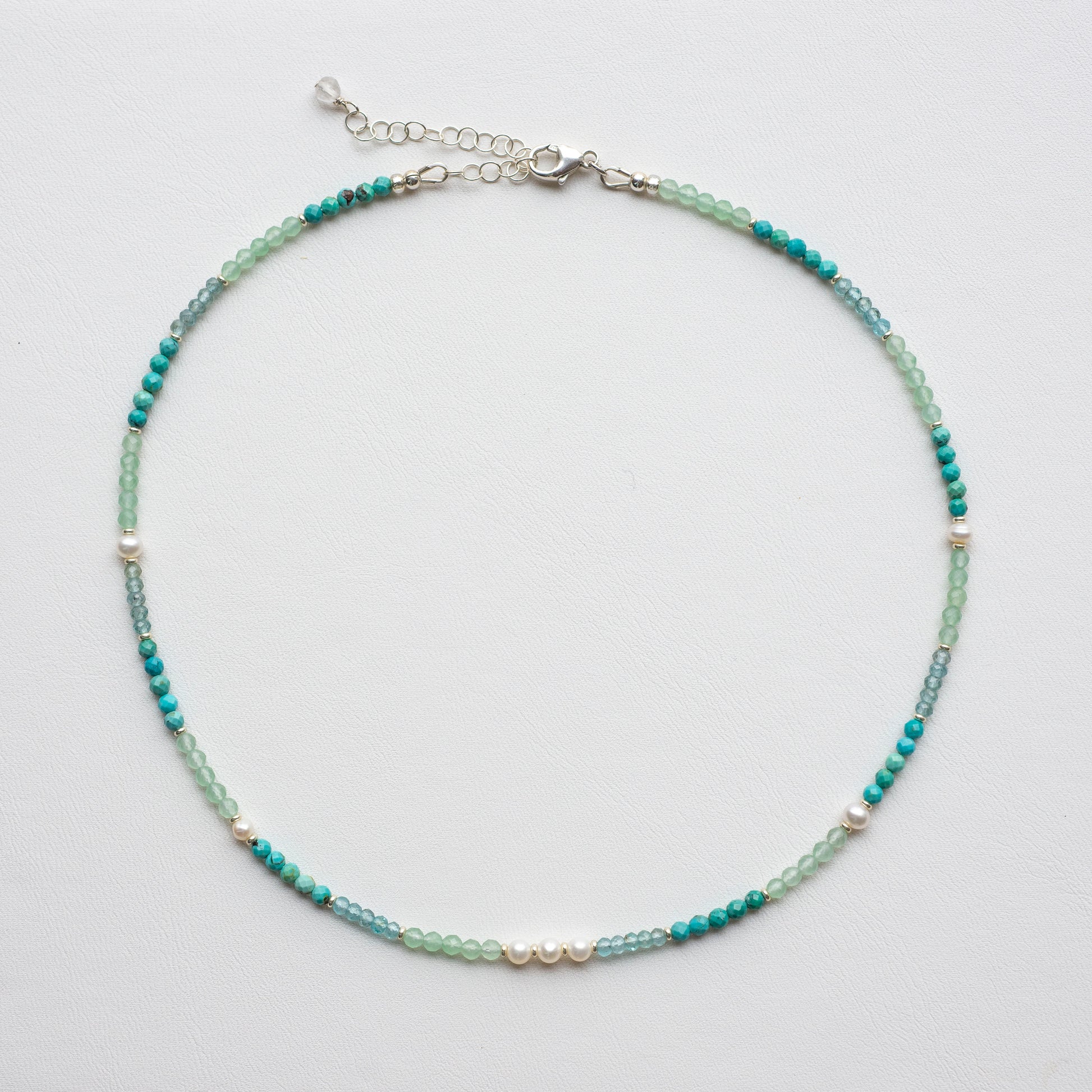 - Freshwater Pearl, Apatite, Chrysoprase, Turquoise, seed beads